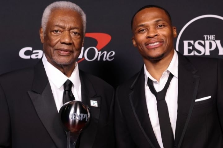 体育资讯07月20日讯 近日,NBA球员拉塞尔-威斯布鲁克作为嘉宾在ESPY颁奖典礼上为奥斯卡-罗伯特森颁发了阿瑟-阿什勇气奖杯。