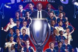 问鼎欧超杯!巴黎官方社媒晒夺冠海报,恩里克携众将出镜