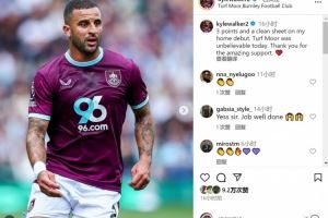 沃克社媒:主场首秀全取三分+零封,感谢球迷的支持