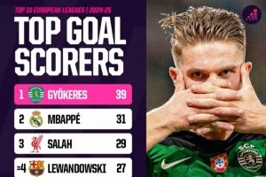 ■欧洲十大联赛 | 2024-2025赛季最佳射手榜: